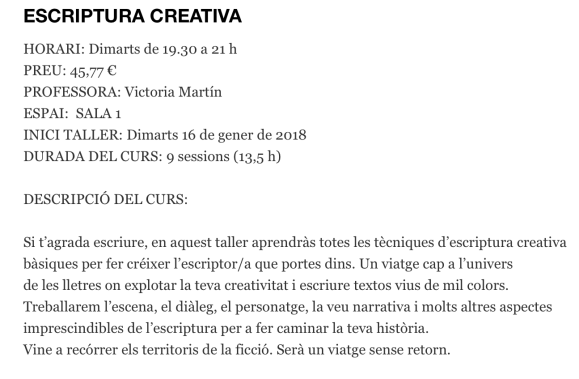 INICI TALLER: Dimarts 19 de setembre de 2017